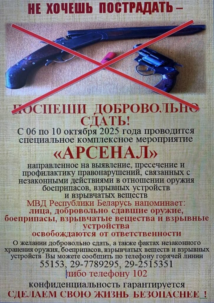 С 6 по 10 октября на территории Узденского района пройдет специальное комплексное мероприятие «Арсенал»