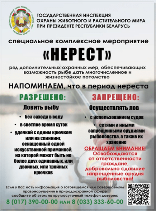 На территории Узденского района с 16 марта по 8 июня 2026 года проходит специальное комплексное мероприятие «Нерест»