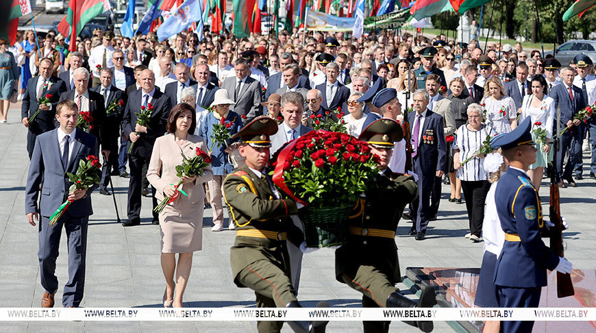 Минск помнит. В честь 50-летия присвоения столице звания «город-герой» на площади Победы возложили цветы