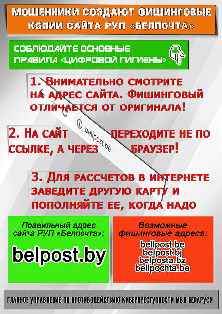 Фишинговые копии сайта РУП «Белпочта»
